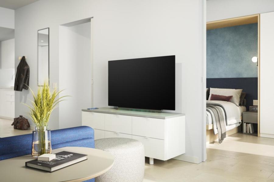 每間房間均配備充足的儲物空間、舒適的大床、瀑布淋浴、最先進的廚房用具和固定裝置,以及從 50 英寸智慧電視到名牌家具等一系列家居舒適設施,另外,還設有 24 小時接待櫃檯、禮賓部和接待團隊哦!