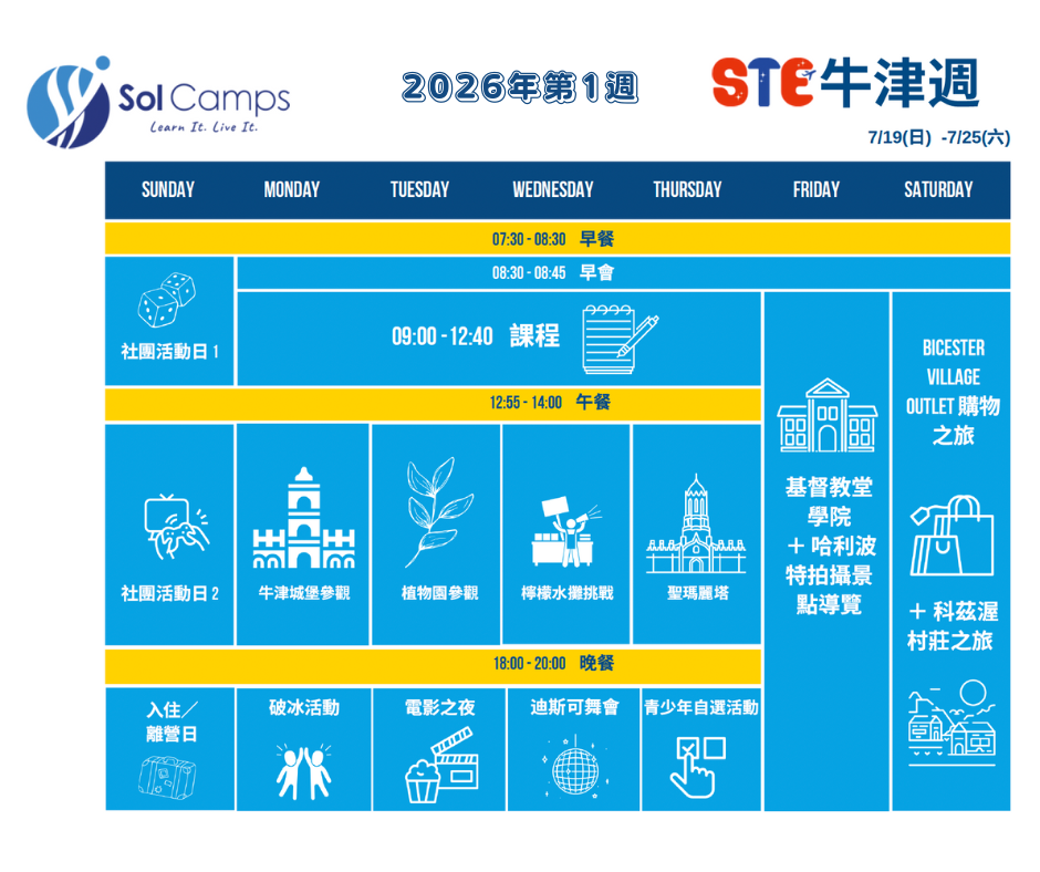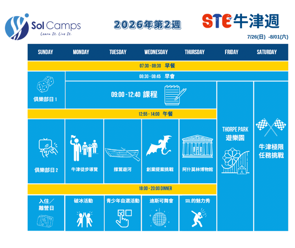 2026年Let's Oxford牛津英語自主性夏令營,分別有二週課程及三週課程(優先開放舊生報名即將額滿)可選擇!