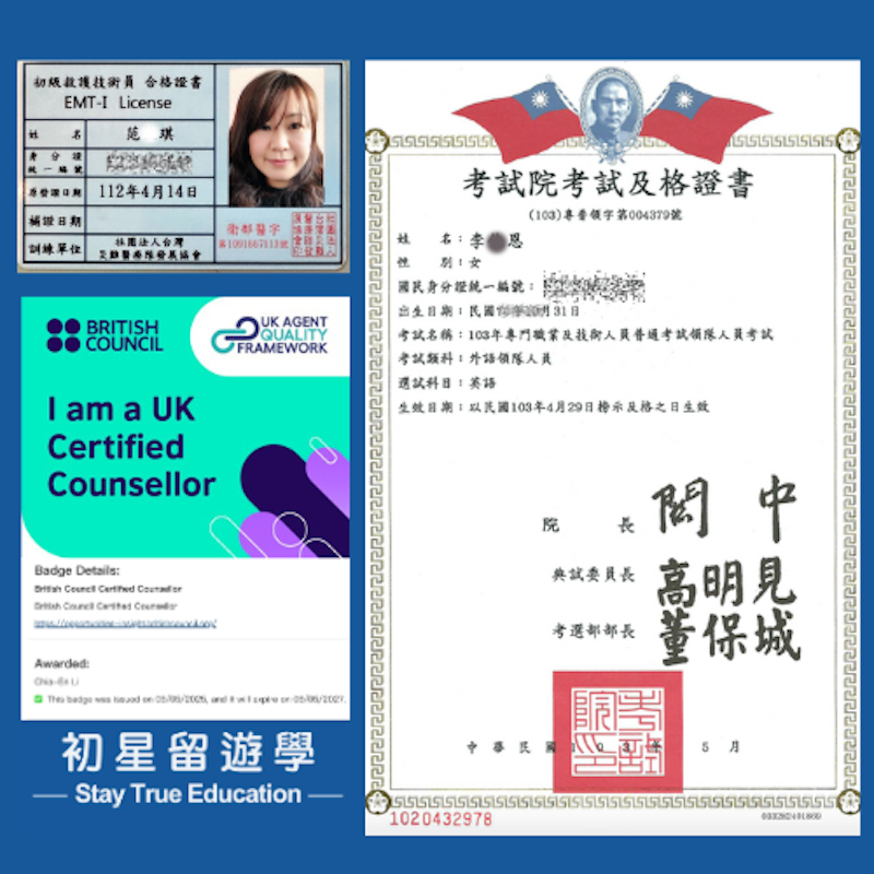 | 美國碩士畢業,美國在地生活6年!擁有10年以上遊學顧問經驗,曾在美國居住六年、熱愛旅行,足跡遍佈 25 個以上國家!從住宿、交通到在地生活"眉角",吃喝玩樂都可以問她,交友廣闊世界各地都有朋友,是學生口中最親切、最好聊的顧問😊 | 加州州大畢業,有10年以上專業留學申請經驗,曾在美國教育基金會擔任助理顧問,現為英國文化協會認證諮商師,並領有國家考試合格外語領隊證照,擅長有系統、有邏輯地規劃留學申請,申請流程清楚、有條理,內建AI模式→你留學申請的GPS! | 語言教育碩士畢業,曾任教於澳洲坎培拉學校、淡江大學及聯合大學華語中心講師。菲律賓資深教育顧問,菲律賓走跳已是達人等級~有多年親子遊學與青少年暑期遊學團-隨團顧問經驗,結合教育專業與實務陪伴,深受學生與家長信任。 |